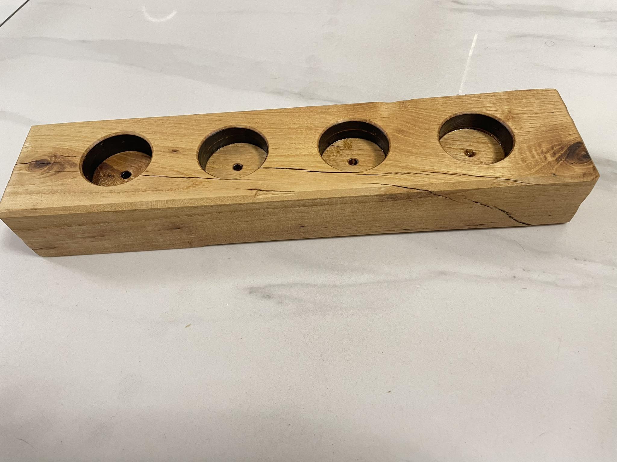 Ręcznie robiona natura tego świecznika nadaje każdemu egzemplarzowi unikalnego charakteru, podkreślając naturalne piękno akacji. Minimalistyczny styl i solidna konstrukcja zapewniają jego trwałość, dzięki czemu będzie on cieszył oko przez długie lata.